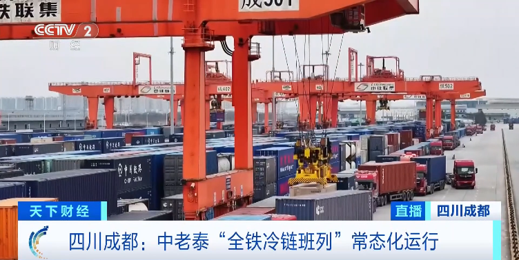 事实上,这些榴莲几天前还长在泰国种植园的榴莲树上。25日,中老泰“全铁冷链班列”开始常态化运行。相比原来的“中老铁路”班列,这条专线将运输起点从老挝的万象直接延伸到了泰国的林查班港。